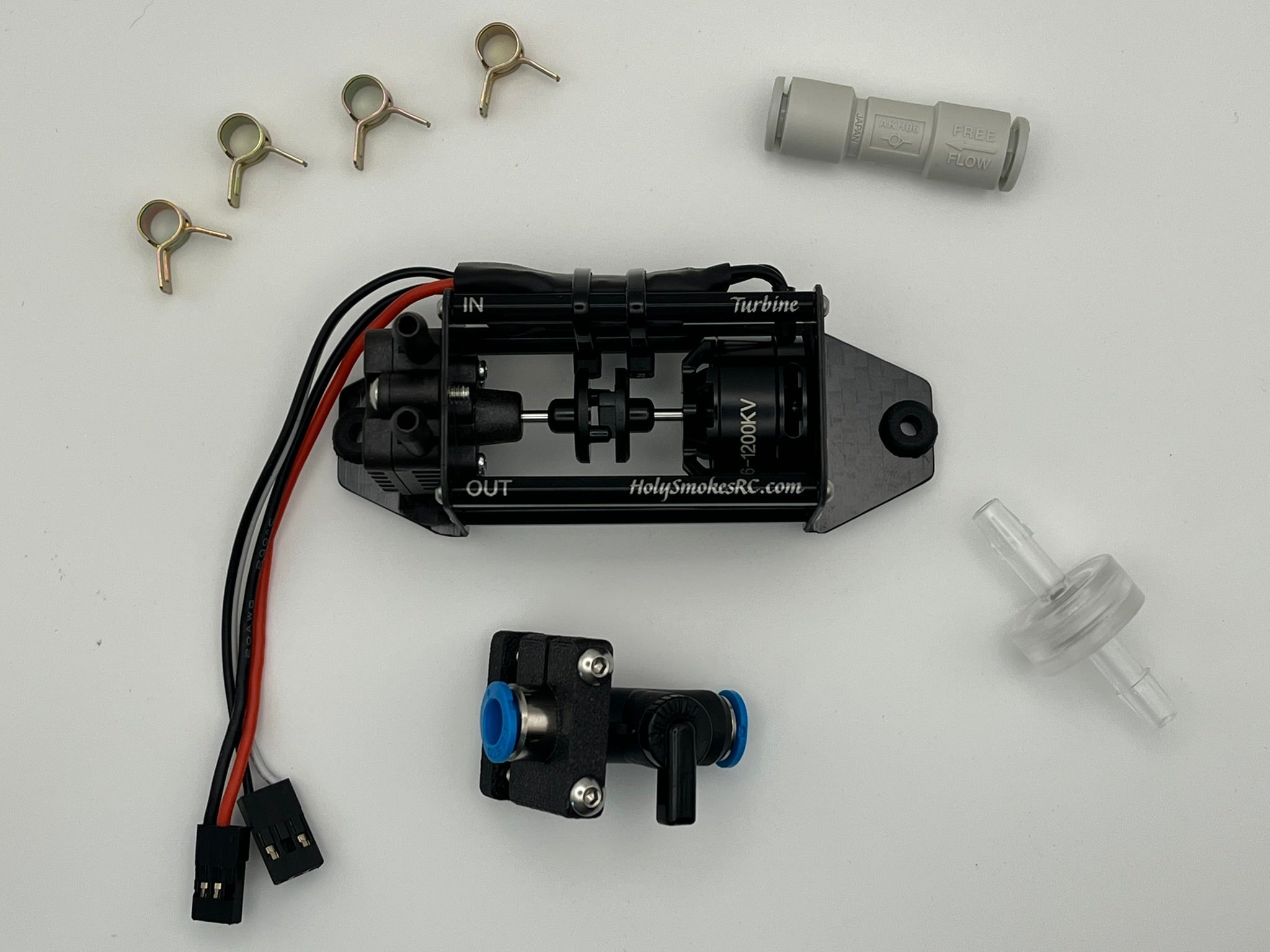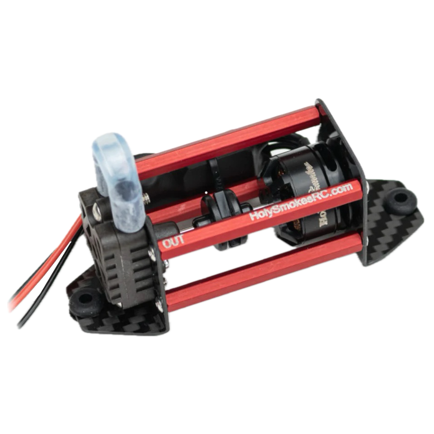 The Holy Smokes Gen3 Turbine Smoke System Now Available. The Holy Smokes Gen3 Turbine Smoke System is specifically engineered for Turbine Jets. It features a 1200KV Motor/ESC combination increasing the flow rate by 35%. Constructed of prepreg carbon fiber composite, aluminum & fiber filled plastic, the system is the lightest available at only 2.08oz/59g.