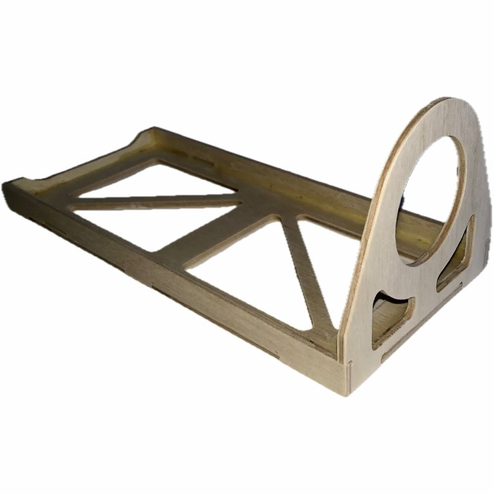 The ply tray is laser cut from .125” (3mm) thick Birch plywood that assembles in minutes. The composite option is cut from 3.5mm thick ply and black fiberglass.